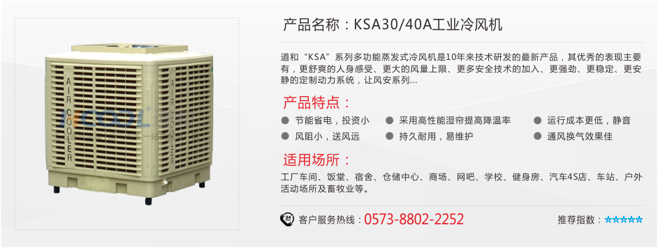 ·?蒸發(fā)式冷風(fēng)機(jī)除了可以讓企業(yè)車間、公共場(chǎng)所、商業(yè)娛樂場(chǎng)合帶來新鮮空氣和降低溫度之外,還有一個(gè)重要特點(diǎn)—-節(jié)能、環(huán)保!它是一款全新無壓縮機(jī)、無冷媒、無銅管的環(huán)保產(chǎn)品,主要部件核心—–蒸發(fā)式濕簾(多層波紋纖維疊合物)及1.1KW的主電機(jī)/是傳統(tǒng)中央空調(diào)耗電一部分,能為各行業(yè)更實(shí)在的省電。